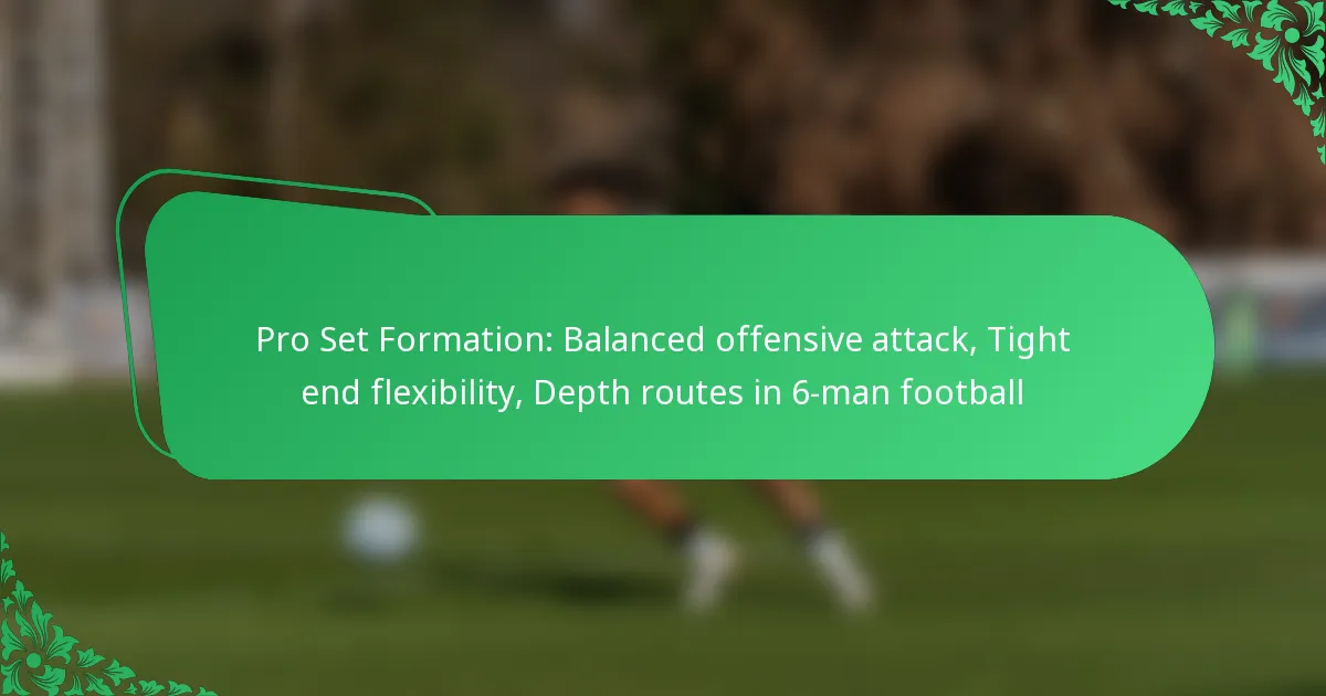 The Pro Set formation in 6-man football is a balanced offensive strategy that utilises two running backs and two wide receivers, providing flexibility and depth in offensive plays. This formation allows teams to adapt their strategies based on the defence, making it a popular choice for maximising offensive potential.