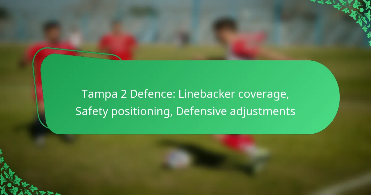 Teams can make defensive adjustments in the Tampa 2 by analysing offensive formations and adapting their linebacker and safety alignments accordingly. Effective communication and in-game adjustments are crucial for countering offensive strategies and maintaining defensive integrity.